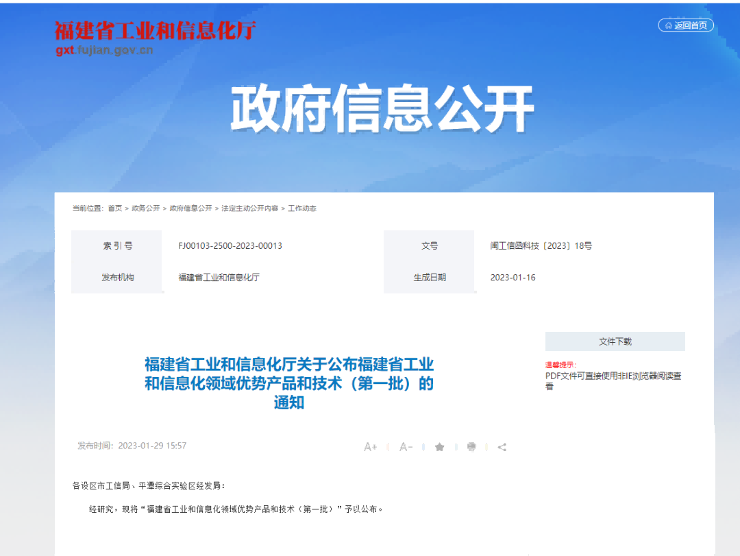 近日,福建省工業和信息化廳發布了“福建省工業和信息化領域優勢產品和技術(第一批)”名單,名單公布了七大領域共53家公司及其優勢產品和技術名稱。福建思嘉環保材料科技有限公司榜上有名!